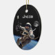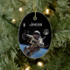 Personalize esta fotografia dramática de um astronauta que faz uma caminhada espacial em órbita acima da Terra, com uma lua de cheio na extrema escuridão do espaço. Simplesmente substitua o nome do seu futuro astronauta favorito pelo mostrado. O verso deste ornamento muito especial tem uma foto da lua de cheio.