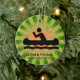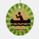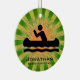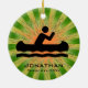 Canoagem Personalizada do Ornamento Natal 20XX. Uma canoa contra um fundo verde e laranja de explosão. Todo texto personalizável, frente e verso!