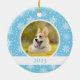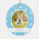 Celebre seu cachorro ou um novo filhote com este ornamento em flocos de neve. Este ornamento personalizado de cachorro apresenta flocos brancos de neve em um fundo azul e pode ser personalizado com o nome do seu cachorro, o ano e duas fotos. Pode também ser utilizado em gatos, cobaias ou até em seres humanos ;)
