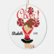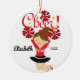 Cerâmica Ornamento de Cheerleader Brunette Cheer preto e ve