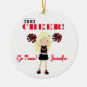 Enfeites de natal Cheerleader Louro Vermelho e Negro. Este ornamento de feriado redondo em vermelho e preto é fácil de personalizar com seu nome, data e nome de mascote. Visite nosso compro para ver este ornamento em uma variedade de opções de cores escolares. Este ornamento é um doce presente de feriado para o cheerleader na sua vida!