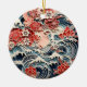 Ornamento em bonito estilo chiiogami azul e vermelho com ondas e flores para simbolizar o Havaí. Quer seja um bem-estar para si mesmo, ou um belo presente especial, este lindo ornamento traz certamente um sorriso.
