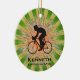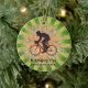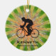 Ornamento de Ciclo de andando de bicicleta em um fundo de explosão de inicialização. Todo texto personalizável, frente e verso!