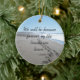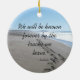A mensagem neste lindo ornamento é da Tribo Indiana de Dakota. Diz, "Seremos conhecidos para sempre pelos caminhos que saímos." A imagem neste ornamento é de dois conjuntos de pegadas rastreando uma margem arenosa. Um belo ornamento mostrando a água azul do oceano, ondas brancas piscando, e o céu azul de uma praia na Califórnia Norte.