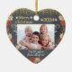 Belo coração cerâmico pendurado com foto da família, design de quadro-negro. Uma lembrança de Natal para pendurar na parede e na árvore todos os anos. Personalize-o com uma foto da sua família como presente especial para avós ou outros familiares.