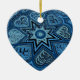 Cerâmica Ornamento de Corações de Arte Folk Azul Denim