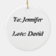 Este item é um ornamento de corações cor-de-rosa para a sua árvore de Natal. Há também um modelo na parte de trás que você pode mudar os nomes para torná-lo mais pessoal, de você para alguém especial.
