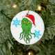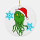 Cthulhu com papai noel chapéu e pessoa idosa pequena do casal assina flocos de neve no fundo.