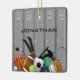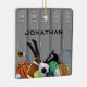 Ornamento de Design da Sala de Bloqueio, com vários equipamentos esportivos em frente a um conjunto de armários. Todo texto personalizável, frente e verso!