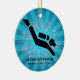 Scuba Diving Personalizado Ornament Natal 20XX em um fundo azul de starburst. Todo texto personalizável, frente e verso!