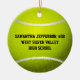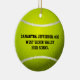 Adicione seu texto à frente deste Natal personalizado com bola de tênis, Feriado ou Ornamento Automático de Carro. Apresenta uma bola de tênis amarelo, preto e branco na frente com seu nome, número e escola (ou outra mensagem personalizada). Presente de excelente para um jogador de tênis segundo grau, equipe esportiva ou presente para um fã esportivo!
