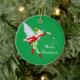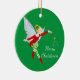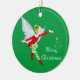 Enfeites de natal mostrado em forma redonda com fundo verde com um impressão de fada mágica de feriado bonito. Personalize este item ou comprar como está.