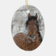 Este lindo garanhão andaluz está em pé na neve suavemente caindo em frente a uma árvore em Longmont, Colorado. Imagem de Carol Walker neste ornamento de férias.