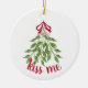 Beije-me sob o mistério. Mistura verde com bagas brancas embrulhadas numa fita vermelha brilhante. Perigoso do teto. Este design editável pode ser transferido para qualquer produto ou editado. altere o plano de fundo ou adicione fotos. Uma aquarela, efeito pintado, faz um presente de excelente.