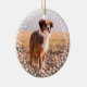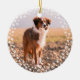Lembre-se da vida do seu amado animal de estimação com este ornamento cerâmico redondo com a foto do seu animal de estimação de um lado e texto personalizado do outro. Entre nos anos do nascimento e morte do seu animal de estimação, o nome e uma mensagem sincera para criar um adorável ornamento e memorializar o seu amado para sempre. Este ornamento também faz um presente pensativo para o dono do animal de estimação que perdeu seu amigo peludo ao redor das férias.