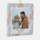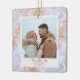Celebrar a estação com elegância subestimada e coração-quente. Este ornamento de feriado quadrado apresenta uma estética de boho moderna em tons neutros suaves, perfeita para casais, recém-casados ou famílias jovens compartilhando sua alegria com entes queridos. Um fundo abstrato suavemente marmoreado com sotaques delicados em flocos de neve arma sua foto pessoal, criando um momento confortável e inspirado no inverno. Projetado cuidadosamente para uma sensação minimalista, mas festiva, essa carta combina lindamente com texturas naturais e paletas sazonais. Ideal para enviar paz, amor e alegria aos amigos e à família durante as férias.