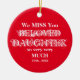 No Adoro Memória Personalizada Filha Memorial Enfeites de natal. Ornamento Memorial Clássico, elegante, de Porcelana Vermelha, no Natal, em Memória Adorável de uma Filha Personalizada, com moderna inscrição branca decorativa na moda. Clique em "personalizar este modelo" para personalizar o Keepape Ornament rápida e facilmente. O texto pode ser personalizado na frente e no verso do Memorial Ornament. Belo Guarda da Memória de Natal para uma Filha amada que perdeu muito! Garantia de 30 Dias. No Loving Memory Personalised Daughing Christmas Memorial Ornament, criado pelo artista original RjF.xx.*Todos os direitos reservados. #OrnamentoNatal #MemorialOrnament #ZazzleMade