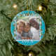 Enfeites de natal azul com estrelas de mar e folhas sagradas com foto emoldurada. Decoração redonda de árvores cerâmicas com modelo de fotografia quadrada e data de um dos lados. Adicione algum texto à parte traseira, como nomes, nome da família, endereço ou qualquer coisa para criar uma adorável manutenção ou dádiva da família.
