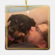 Não há amor como o amor de um cachorro. Apesar de viverem vidas mais curtas do que nós, o vínculo que temos com eles nunca morre e merece um lugar em nossas casas como aquele amor tem em nossos corações. Este ornamento fotomemorial, simples e enquadrado em ouro, oferece espaço para duas fotos, uma com uma camada simples para adicionar seu nome e data de vida. Use Forever em nossos corações ou sua própria frase em memória.