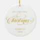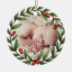 Ornamento de Fotos da Fúria de Natal com sua foto favorita no centro cercada por uma tradicional Fera de Natal com verde e bagas em fundo vermelho profundo. A parte de trás tem o mesmo vermelho profundo com texto dourado. Um belo roteiro de Natal "irado" junto com o seu texto personalizável dá uma impressão elegante e clássica. Esta será uma manutenção acalentada durante anos para a época festiva - você a design e se adapta para um ornamento de retrato de recém-nascidos, crianças, animais de estimação ou família.