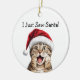 Gatinho de Gatinho Gatinho, Decoração das Árvores do Natal para Gift Colecionável Felino de Gatinhas Gatinhas. Este Enfeites de natal Engraçado apresenta um Gato Misquioso. Esse Whimsical Kitten não pode acreditar em seus olhos quando ele vê o Papai Noel! Celebre seus loucos e incríveis amigos felinos com este presente de Natal dos Gatos! Um Gatinho humorístico numa decoração de Natal para a sua árvore de Natal. O verso diz: "Acabei de ver Papais noeis!" Este Enfeites de natal Engraçado é tão bonito que me faz querer rebentar para a canção... "E um gato na árvore de Natal, Fa la la la!"