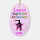Esta fantástica ginasta fará sacudir para esta bonito cor-de-rosa personalizada e datada Apesar de ser pouco, ela é feroz ornamento de ginástica do www.zazzle.com/mysportstar. Essa ginasta acredita no Poder dos Sonhos de Ginástica e vai buscar ouro. Este fantástico ornamento de ginástica personalizado faz um presente valioso para os aniversários, feriados, ou qualquer ocasião, não apenas para o Natal. Sua ginasta especial vai adorar pendurar este ornamento de ginástica na sua árvore ano após ano. É uma comemoração de Natal da ginástica!