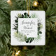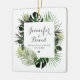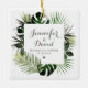 Este ornamento de manutenção de casamento tropical apresenta uma borda ousada de plantas tropicais originalmente renderizada em aquarela. Basta mudar os nomes dos casais, a localização do casamento e a data, e adicionar sua própria foto no verso.
