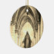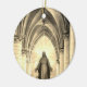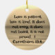 Ornamento redondo com imagem de Jesus num Templo da frente e um verso Bíblia de 1rua Corintianos 13:4 nas costas.