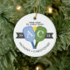 Ornamento de Jogador de Fotografias Personalizado. Comemore seu ano de piquenique jogando com um ornamento divertido. Mostrada com pás azuis e verdes com uma bola amarela, mas TODAS AS CORES SÃO EDITÁVEIS POR VOCÊ! Você pode escolher novas cores para os redemoinhos, pickleball, banner e texto. Adicione sua foto à parte de trás do ornamento. © Kimbellish, LLC
