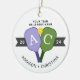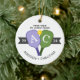 Ornamento de Jogador de Fotografias Personalizado. Comemore seu ano de piquenique jogando com um ornamento divertido. Mostrada com pás roxas e verdes com uma bola amarela, mas TODAS AS CORES SÃO EDITÁVEIS POR VOCÊ! Você pode escolher novas cores para os redemoinhos, pickleball, banner e texto. Adicione sua foto à parte de trás do ornamento. © Kimbellish, LLC