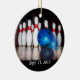 Dois adornos laterais com gráficos de boliche. Personalize este ornamento com data ou ano da honra com pontuação no bolso.