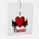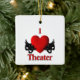 Teatro do Coração com máscaras de comédia e tragédia em ambos os lados do grande coração vermelho.
