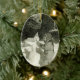 O ornamento de neve tem uma antiga foto de Julia tocando na neve, Douglas Morrill melhorou essa foto.