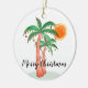 Este Enfeites de natal apresenta palmeiras decoradas com luzes e bolhas. Porque nós criamos nosso próprio trabalho de arte você não encontrará essa imagem exata de outros designers. Original Watercolor © Michele Davies.
