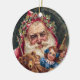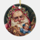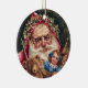 A imagem neste ornamento foi adaptada a partir de um cartão postal antigo. Ele mostra papais noeis sorridentes com uma coroa de Holly segurando um ursinho de pelúcia e algumas bonecas.