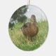 Uma fotografia de um lindo pato-real feminino que se diverte um pouco na grama por um lago num ornamento! Este ornamento é perfeito para o Natal ou a qualquer hora do ano!