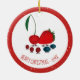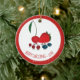 Ornamento com frutas sorridentes e a mensagem personalizável "Berry Christmas" (Natal de Berry).