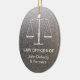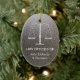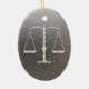 Ornamento personalizable elegante com as "escalas de justiça" no fundo azul das canvas.