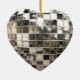 O design bonito do abstrato da forma do coração da prata do mosaico com um olhar brilhante do mirrorball do disco em ambos os lados faz um presente de época natalícia festivo e grande!