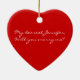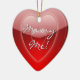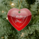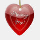 Adorável ornamento vermelho em forma de coração, com gráficos vermelhos brilhantes em corações vermelhos e texto lendo Casado Me! No verso está vermelho sólido e o texto em branco. Personalize adicionando seu próprio texto ou apenas mude o nome. Surpreenda-a este ano, com uma proposta de casamento na sua árvore.