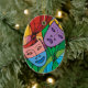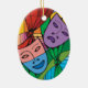 Um Enfeites de natal em forma oval com o símbolo do drama de Tragédia e Comédia.