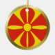 Ambos os lados deste ornamento caracterizam a bandeira da Macedônia do Norte, que se transformou num círculo com ouro. Simples decoração da Macedônia do Norte para sua casa.