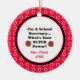 Dê à sua secretária favorita este sermão. Tem um fundo vermelho com pequeno círculo branco esboçado. Há um grande centro branco esboçado em um círculo fino vermelho e preto. No centro de preto lê-se: "Sou secretária da escola... Qual é o seu super poder?" com duas maçãs pequenas ao lado. Personalize com o nome dela por baixo. Veja as muitas outras ocupações e ornamentos que temos em nossa loja.