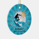 Ornamento de surfe em um fundo de estouro. Todo texto personalizável, frente e verso!