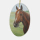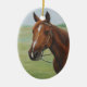Este ornamento caracteriza uma reprodução de minha pintura a óleo original de um cavalo de um quarto.