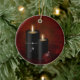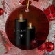 Ilustração de Natal gótica com velas pretas com decoração de crânio prateado e um bauble de natal vermelho com crânios pretos sobre fundo vermelho-preto grunge com flocos de neve.