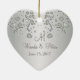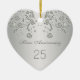 Redemoinhos florais de prata, folhas e ornamento do aniversário de casamento dos corações 25o