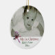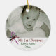 Os primeiros enfeites de natal do bebê simples elegante do bastão de doces. Bastão de doces com a baga vermelha da fita e do azevinho, com nome do bebê, foto e data. Personalize-a adicionando/que muda o texto. Você pode igualmente adicionar o texto e a cor à parte traseira do ornamento. Se você precisa a ajuda que personaliza o produto ou tem quaisquer perguntas, contacte-me por favor. Visite www.zazzle.com/lsarmentoart para um design mais original.
