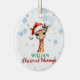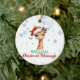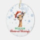 Enfeite cristão personalizado, fofo bebê Girafa com chapéu de Natal, citação bíblia nas costas e fundo de neve. Isaiah 7:14" Por isso, o próprio Senhor lhe dará um sinal. O virgem conceberá e terá um filho, e chamará seu nome de Immanuel."
