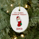Você pode personalizar a parte traseira e para mudar a data ornamento da lembrança do Natal deste bebê bonito no primeiro que caracteriza um bebê em um texto vermelho do estilo da meia e do miúdo do Natal que me leia "está presente do Natal do pai!"